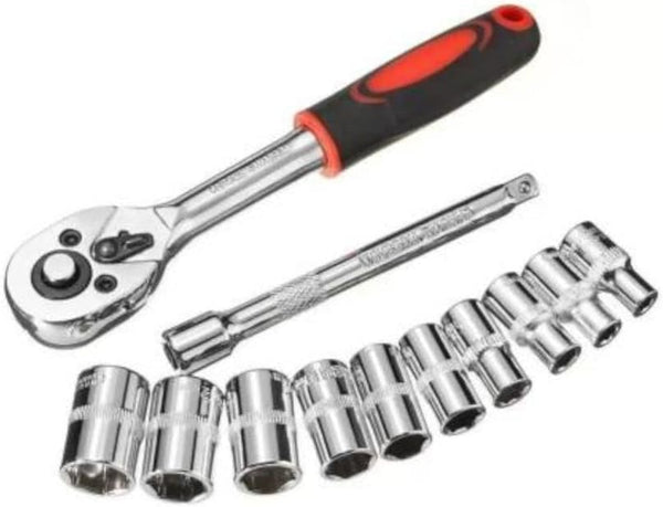 Ovaj Set Nasadnih Ključeva pruža vrhunsku podršku za širok spektar popravki i održavanja vozila, bicikala, motocikala i kućanskih aparata. Sastoji se od 10 kvalitetnih nastavaka od hrom-vanadijum čelika, pružajući izdržljivost i dugotrajan rad.
