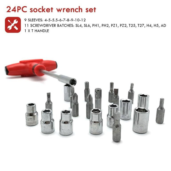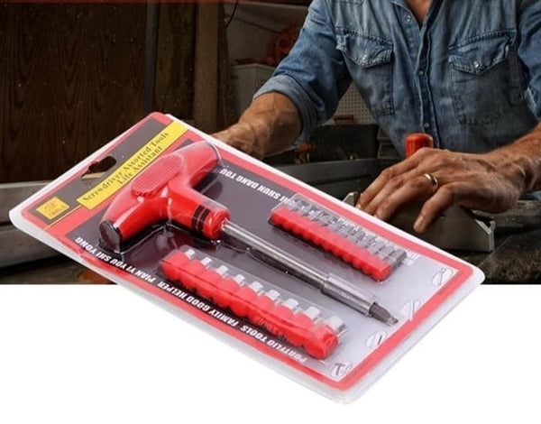 T – odvijač sa gedorama i nastavcima za šrafciger.