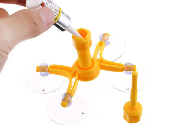 1. Postavite „nogice“ koje ne dnu imaju vakum pomoću kog se drže za staklo i to tako da pukotina bude na sredini.