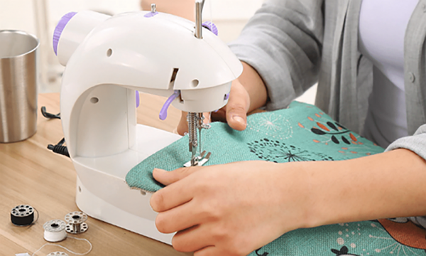 Mašina za šivenje mini koja radi na baterije ili na struju preko adaptera koji se nalazi u kompletu.