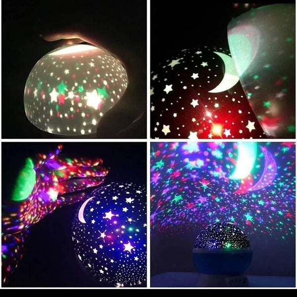 Lampa koja uz pomoc led dioda i prozirnih panela, projektuje zvezdano nebo na Vase zidove i plafon. Efekat je zaista ocaravajuc i veoma romantican. Mogucnost menjanja boja kao I rotiranje/vrtenje lampe. Poznato je da su led diode jako mali potrosac tako da bilo koje alkalne baterije mogu trajati mesecima…