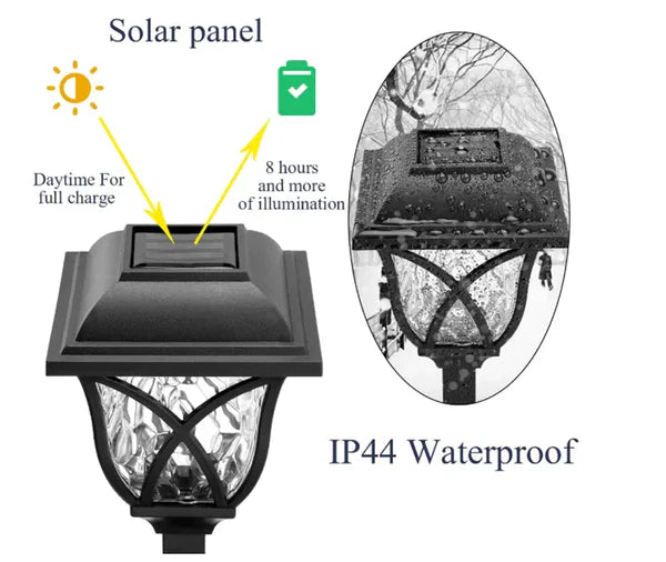 Lampa se napaja pomoću solarne energije tako da nije potrebna električna energija kao ni baterije. Dovoljno je samo da je postovite tako da je dostupno suncu.