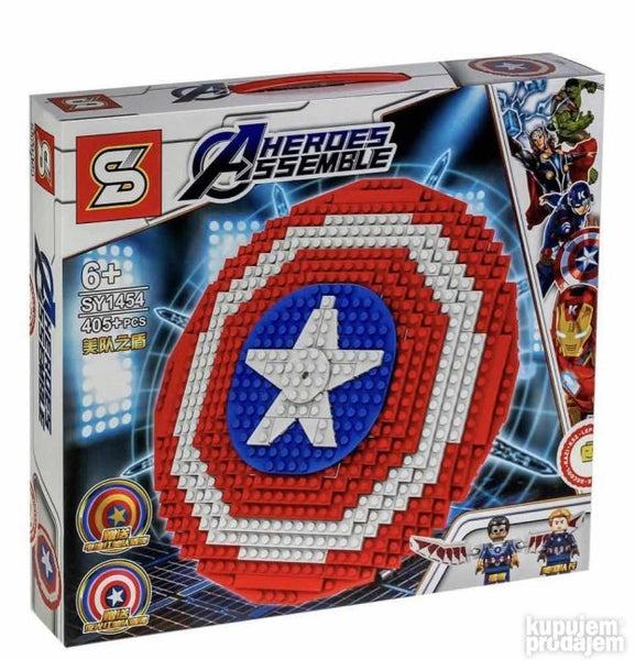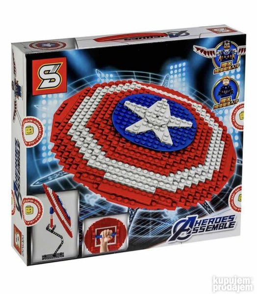 Конструктор припада серији Хероес Ассембле и састоји се од 405 делова потпуно компатибилних са водећим брендовима цигли. Делови комплета су дизајнирани да направе легендарни штит Капетана Америке који је направио сам Тони Старк. Сакупите и изградите своју колекцију серијала о супер херојима помоћу наше продавнице на мрежи. Колекција коју сте саставили плус мало маште - још више сценарија и заплета за игру.