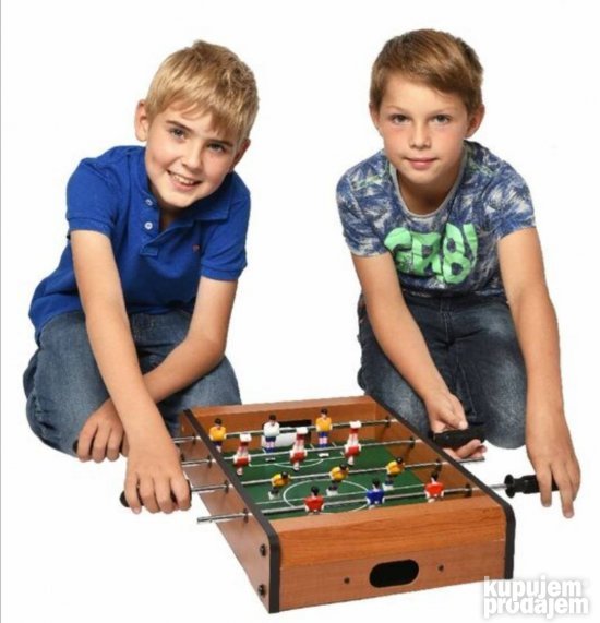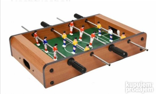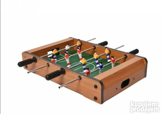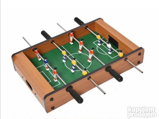 Opis proizvoda stoni fudbal Ovaj manji sto za sto je zabavan i trenira motoričke veštine i koordinaciju ruku i očiju! Opremljen sa 6 delova na svakoj strani sigurno će oduševiti igrače sjajnim bitkama na stolu! Igračka je napravljena od obojenog i lakiranog drveta. Fudbalska lopta je opremljena gol kontrama i dolazi sa 2 lopte