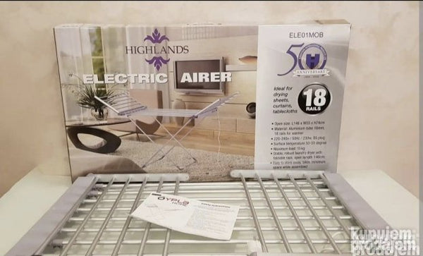 • Stabilna električna sušiluca za sušenje veša sa sklopivim nosačem otvorena dužina 146 cm• Otvorena veličina: D146 x Š55 x V74 cm• Materijal: Aluminijumska cev 16mm 18 šina za grejač• 220-240V / 50HZ / 230W BS utikač• Temperatura površine 50-55 stepeni• Maksimalno opterećenje: 15 kg• Lako se skladišti zauzima minimalno prostora dok je sastavljena. . .