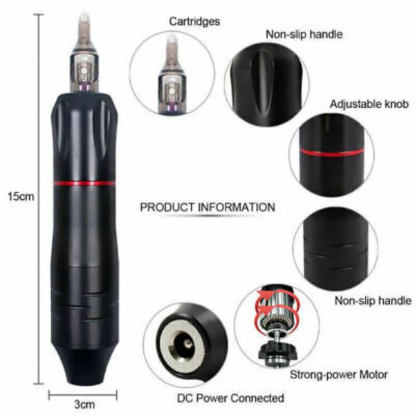 - Ergonomska, lagana mašina u stilu olovke, koja oponaša držanje i osećaj prave olovke, ova olovka za tetoviranje omogućava udobniji i precizniji postupak tetoviranja
