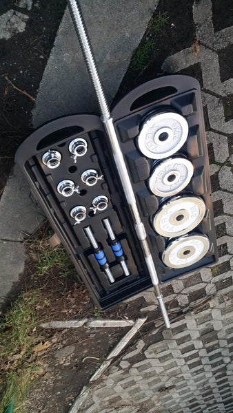 *Set od 50 kg - Tegovi, sipke za bucuce, osiguraci, spojnice (dve sipke koje se upotrebljavaju za montiranje da se dobije dvorucni teg).