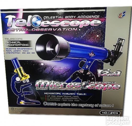 Teleskop i mikroskop za male naucnike super set za igru. Istražite nebo ovim astronomskim teleskopom i dajte deci da razviju svoje veštine. Sa ovim teleskopom i njegovom mogućnošću da zumira i do 40x dete će moći da istražuje svemir i gleda u zvezde i otkriva sazvežđa i nebeska tela.