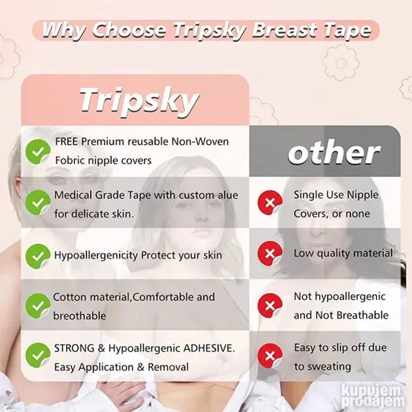 - Traka za grudi i poklopac za bradavice imaju jako prianjanje i ne padaju lako. I vodootporne su iako ih nosite pod vodom ili se mnogo znojite ostaće prikovane za telo kao druga koža.