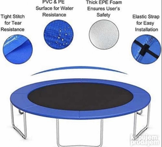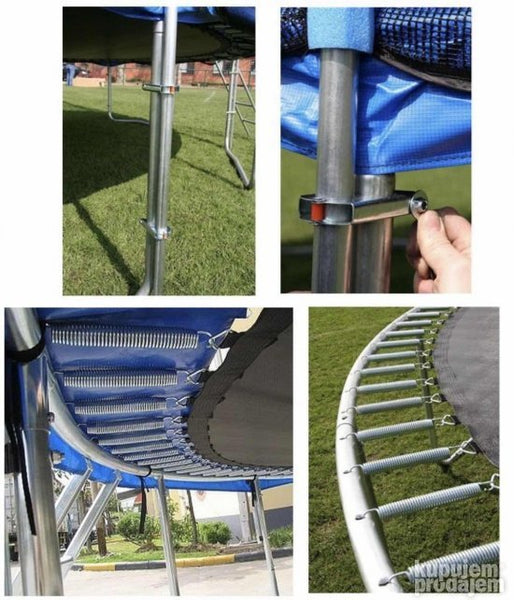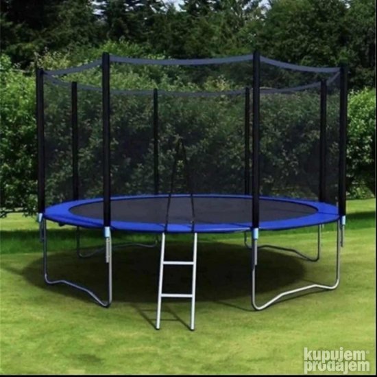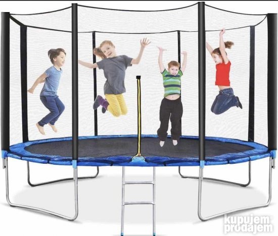 TRAMBOLINA SA ZASTITNOM MREZOM I LESTVICAMA 244cm Set sadrzi: - 1 kom 244cm 3 nozna trambulina + zastitna mreza i lestvice Trambolina izgleda kao na slici zastitna mreza na stubovima ! Moze da se koristi do 150 kg