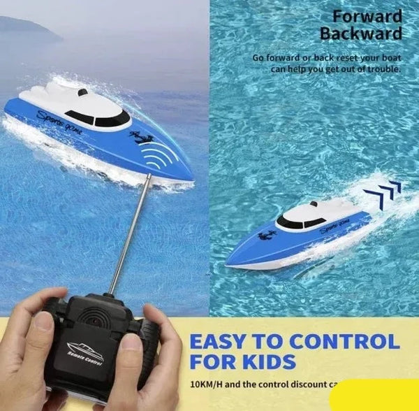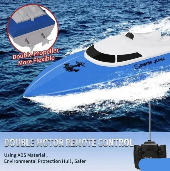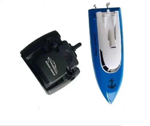 Opis: Trkački gliser čamac na daljinski je brz, lak za upravljanje i idealan je za igru na otvorenom. Ovaj čamac je opremljen snažnim motorom i dva propelera koji mu omogućavaju brzo kretanje po vodi. Sa vodootpornim dizajnom i ABS materijalom, čamac je izdržljiv i može se koristiti u različitim vremenskim uslovima.