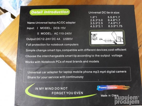 Univerzalni punjac adapter za laptop AC-DC output DC 12-24 DC 4a 120w odlican 8 ulaza za vise vrsta prikljucaka za laptopove .