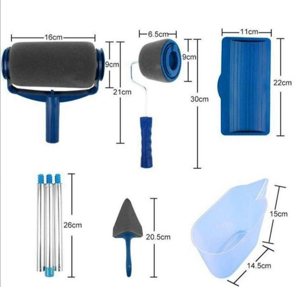 Valjak za krečenje paint roller dolazi u setu od 6 nastavaka. Toliko ga je lako koristiti da bukvalno neko ko nije nikad krečio, može da dobije savršeno ravnomerno okrečen zid. Ono što je još jako bitno, nema kapljanja boje i postavljanja papira i najlona po podu.