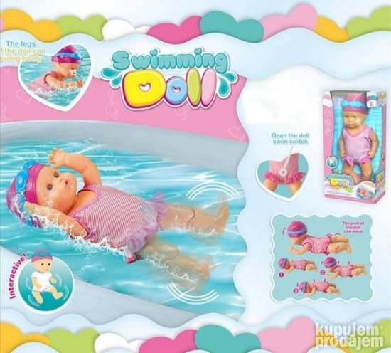 Elektricna lutka za plivanje vodootporna pomera nogama pluta po vodi i igra se sa decom.