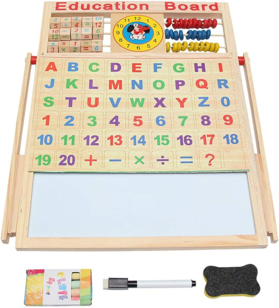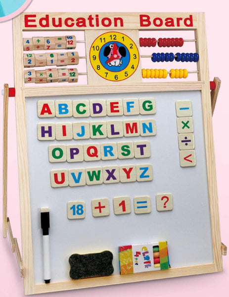 - Dvostrana tabla sa magnetnim slovima, brojevima, abakusom, satom, kredama i flomasterom.