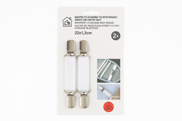Visokokvalitetne elastične vrpce sa kopčama dizajnirane specijalno za sigurno pričvršćivanje navlake na dasku za peglanje. Ove praktične vrpce omogućavaju čvrsto i stabilno pričvršćivanje navlake, sprečavajući njeno pomeranje tokom peglanja.