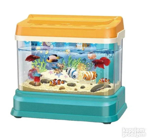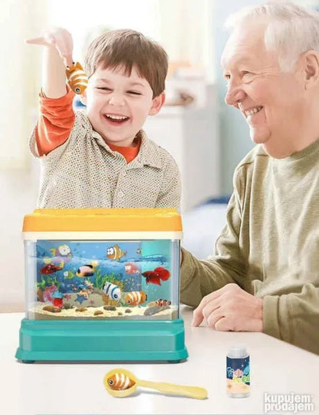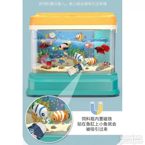 УСБ кабл (глава пуњача није укључена) - Може се напунити ПРАВОМ рибом јер постоји усисна пумпа која ствара искру за кисеоник - Има светла и песама - Риба и штап за пецање већ имају магнете тако да можете намамити рибу доношењем штап за пецање ближе рибљим устима и може давати храну изван акваријума већ има магнет у боци за храњење рибе - Осећам се као да одгајате праву рибу - Величина кутије: 27 к 22 к 12 цм - Запреминска тежина: 1200 гр - Материјал : Пластика - Не користи батерију може се укључити помоћу повер банк-а или електричног утикача - Може се напунити правом водом - Направљен је од квалитетног материјала и има СНИ ознаку тако да је безбедно за игру. - Вежбајте дечију машту моторику сензибилитет тачност и концентрацију научите едукацију да препознају боје слике и машта деце - За дечије играчке од 3 године и више - Веома прикладан за поклон за бебу вашег детета