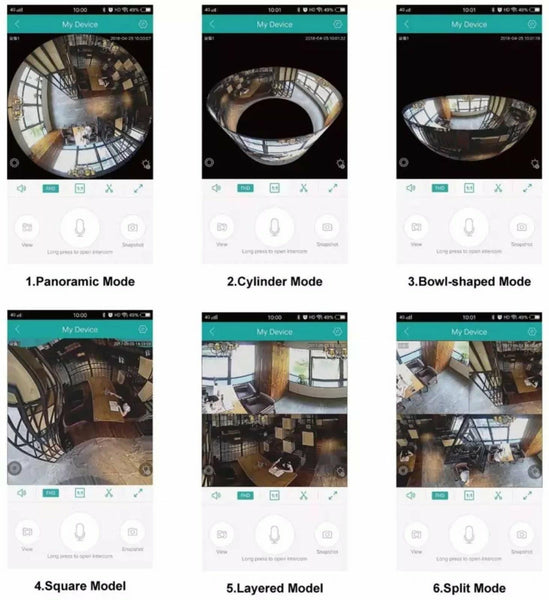 Promena rezima gledanje kamere, kamera moze da vidi kao Sfera, da se ekran podeli na 4 pa da se vidi kao 4 kamere, podela gledanja na po 180 stepeni levo i desno.