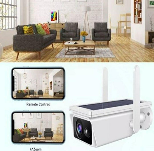 Video nadzor. Kamera sa solarnim napajanjem. Dakle, nikakvi kablovi vam nisu potrebi da bi povezali kameru. Jednostavno se instalira aplikacija na telefon. Upari se sa kamerom i možete pratiti šta Vam se dešava u domu i da ste na drugom kraju sveta. Neophodna je stabilna internet konekcija da bi kamera funkcionisala. Podatke snimanja može da skladišti na memoriji telefona ili SD kartici. Solarni panel može da se podešava u gotovo svim pravcima.