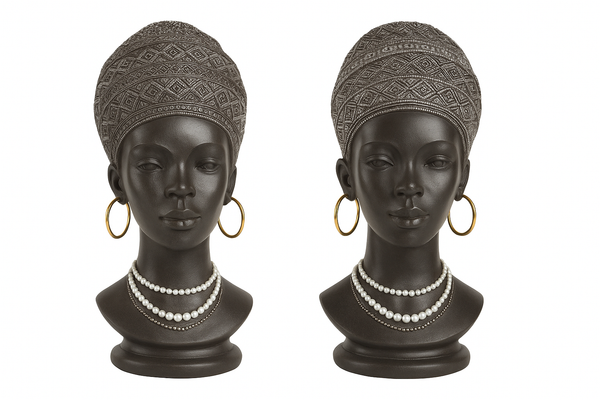Elegantne afričke dekorativne biste koje donose egzotičnu lepotu i kulturno bogatstvo u vaš dom. Ovaj set od 2 komada predstavlja savršen spoj umetnosti i dekoracije.