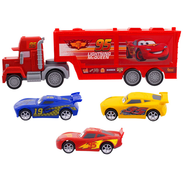 Transporter Mack je detaljno dizajniran sa prepoznatljivim Cars 3 grafikama i može da otvori svoj zadnji deo kako bi utovario i istovario vozila. Set uključuje i druge mini automobile (broj varira, vidljivo na pakovanju), uključujući naravno i Lightning McQueena sa brojem 95.