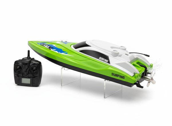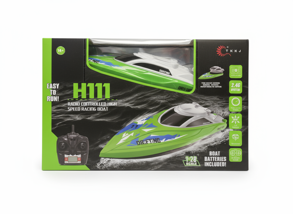 Zaronite u svet vodenih trka sa ovim spektakularnim H11 RC trkaćim čamcem! Ovaj elegantni zeleno-plavi speedboat dizajniran je za maksimalne performanse i uzbudljivu zabavu na vodi.