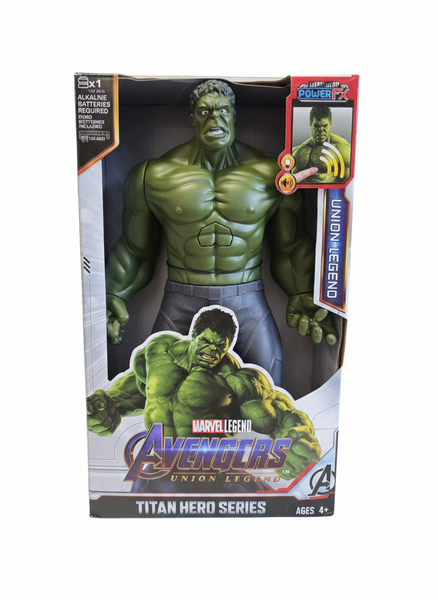 Oslobodite moć sa ovom spektakularnom Hulk figurom iz Avengers Union Legend Titan Hero serije! Ova masivna zelena figura visine 30cm sa Power FX zvučnim efektima donosi neverovatnu snagu najjačeg Avengera.