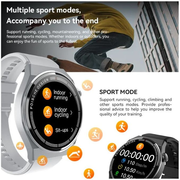 Zdravstvene funkcije ovog pametnog sata uključuju praćenje lokacije u stvarnom vremenu, merenje otkucaja srca, krvnog pritiska, nivoa kiseonika u krvi i nivoa šećera u krvi, pružajući vam sveobuhvatne informacije o vašem zdravlju. Ugrađeni senzori podržavaju 15 različitih sportskih režima, pomažući vam u postizanju svojih fitness ciljeva.