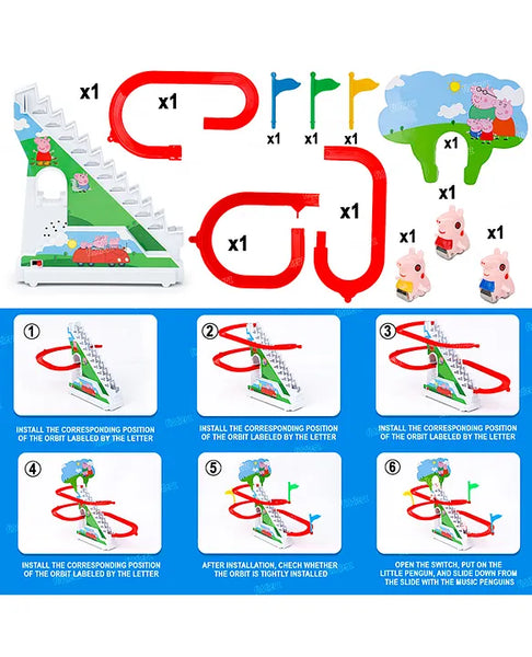 Peppa Pig tobogan za igru je šarena i zabavna igračka koja će oduševiti male ljubitelje popularne animirane serije. Ovaj set uključuje:
