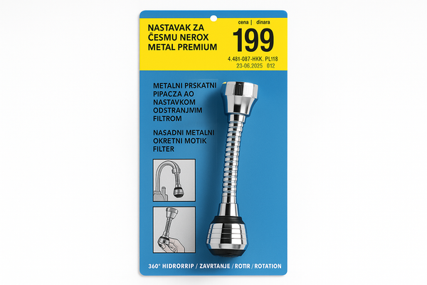Premium metalni nastavak za česmu sa 360° rotacijom koji revolucioniše način korišćenja slavine u vašoj kuhinji. Ovaj napredni nastavak kombinuje funkcionalnost sa elegantnim dizajnom.