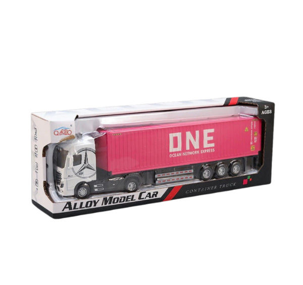 Predstavljamo detaljan model šlepera sa kontejnerom kompanije ONE (Ocean Network Express). Ovaj atraktivni model kombinuje metalnu kabinu tegljača bele boje sa prepoznatljivim roze kontejnerom na kojem je istaknut logo "ONE Ocean Network Express".