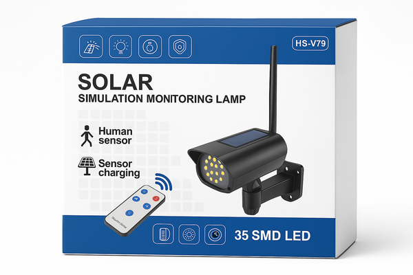 Revolucionarna solarna lampa koja kombinuje funkciju osvetljenja sa simulacijom bezbednosne kamere. Ova pametna lampa sa 35 SMD LED dioda pruža efikasnu zaštitu vašeg doma ili poslovnog prostora.