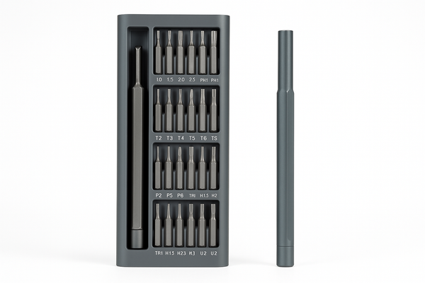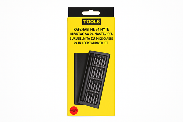Ovaj sveobuhvatni set alata sadrži sve što vam je potrebno za različite radove oko kuće, u radionici ili kancelariji. Sa 24 različita nastavka, ovaj set pokriva sve standardne tipove šrafova.
