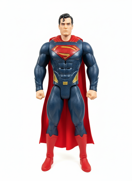 Figura je precizno dizajnirana sa ikoničnim plavim kostimom, crvenim plaštom i prepoznatljivim 'S' simbolom na grudima. Svaki detalj je pažljivo osmišljen kako bi se dočarala moć i veličanstvenost Čoveka od čelika.