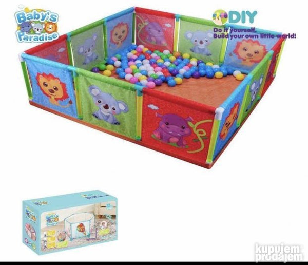 Šarena ogradica za bebe sa motivima životinjica*Ogradica je sigurno i udobno mesto za igru. *Možete je poneti sa sobom čak i kada ste na odmoru.