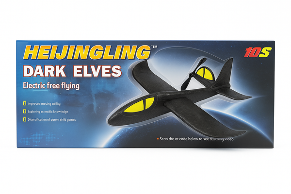 Mistični Dark Elves avion koji će vas odvesti u svet fantazije i avanture! Ovaj elegantni crni jedrilac sa žutim akcentima koristi električnu energiju za spektakularno slobodno letenje.