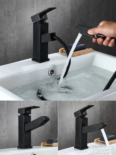 Crna aluminijumska slavina sa jednom rupom za toplo i hladno pranje