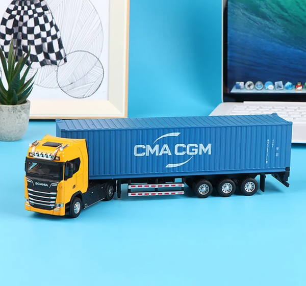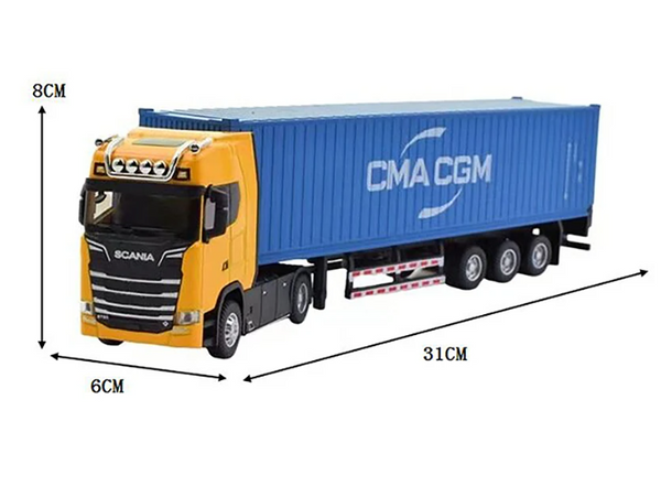 Realističan dizajn: Model je izrađen u razmeri 1:36, pružajući realističan prikaz kontejnerskog kamiona slepera. Boje su žuta, bela i crvena, doprinoseći vizuelnom uživanju u igri.