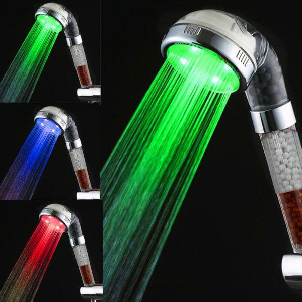 Prelep dekorativni element za Vaše kupatilo. Uredaj ne koristi baterije, vec sama voda pokrece malu turbinu unutar tuša i proizvodi struju za svetlosne indikatore.12 LED dioda svetli u sedam boja, koje se postepeno automatski menjaju. Svetlo koje se širi kroz mlaz vode je veoma jako, tako da obasjava celo kupatilo. Unutar providnog tela rucice tuša se nalaze filteri sa anjonskim kuglicama, koje pružaju zdravo kupanje.