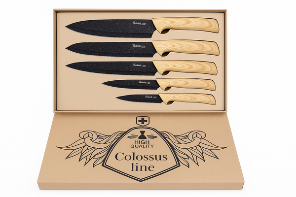 Ekskluzivni mermerno keramicki set od 5 profesionalnih kuhinjskih noževa sa elegantnim dizajnom i vrhunskim performansama. Noževi su izrađeni od visokokvalitetnog nehrđajućeg čelika sa specijalnim premazom koji im daje jedinstveni izgled i dodatnu otpornost. Ergonomski oblikovane drške od prirodnog drveta pružaju savršenu kontrolu i udobnost tokom rada. Set sadrži sve potrebne noževe za profesionalnu pripremu hrane - od sitnjenja povrća do sečenja mesa. Dolazi u elegantnoj poklon kutiji, idealan kao poklon za ljubitelje kuvanja.