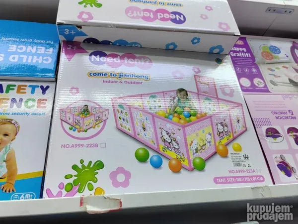 - Ograda za igru je veoma jednostavna za instaliranje i nosenje mozete je koristiti u zatvorenom i na otvorenom kao sto su park plaza trava itd.- Dimenzije : 118x80x118cm Visina ogradice bez kosa: oko 35cm
